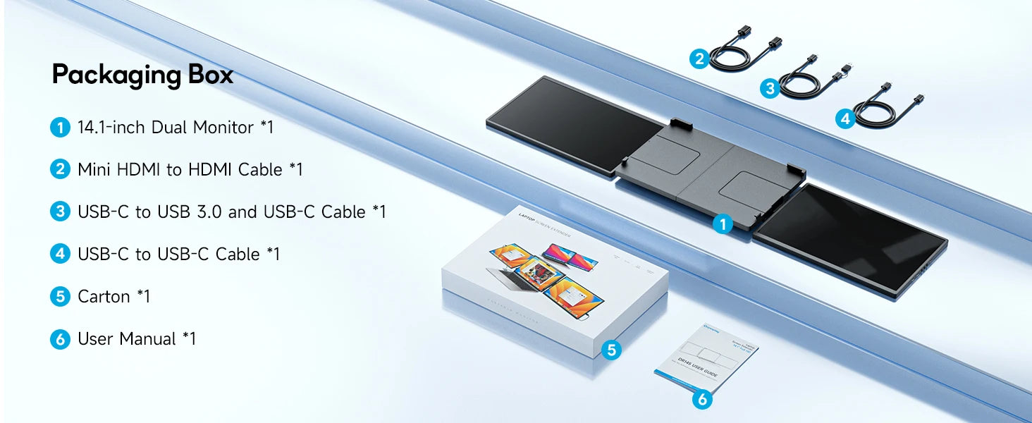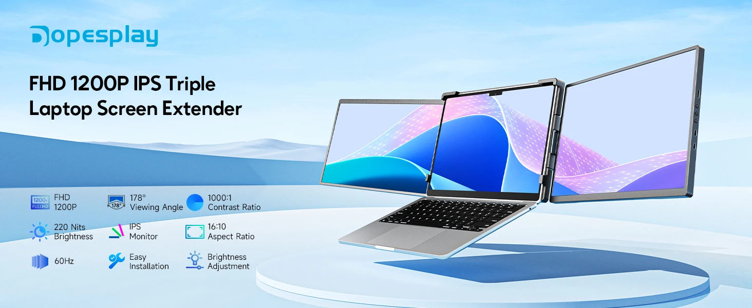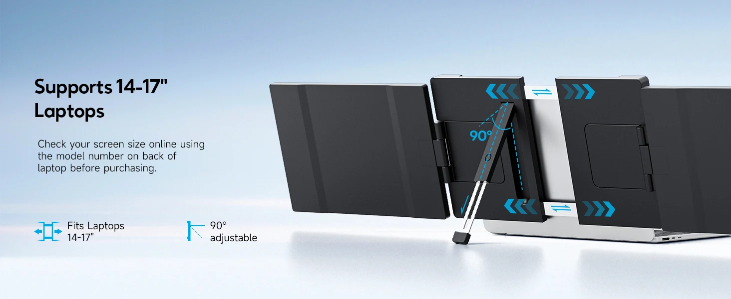 π»γPortable Laptop Screen Extender for ProductivityγDue to a decent size, detachable and foldable design, Dopesplay 14.1" triple laptop screen extender offers you fits easily into your travel backpack. Easy to carry and install. The vertical/ horizontal screen positions provide more convenience for your daily work. A must have for work travel if you are used to multiple screens.