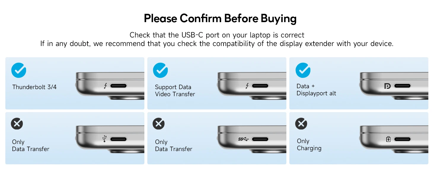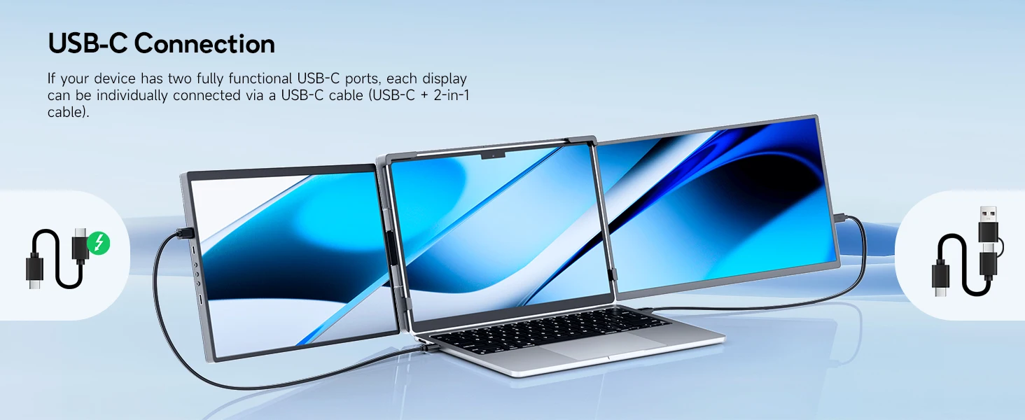 β οΈγNotice Before PurchasingγBecause of the limitations of the chip, Macbook users need to download the driver to use both screens properly, otherwise only one screen will light up. Please don't hesitate to contact us for the driver. And you need to connect your USB 3.0 port to the type-c port in the center near the button.